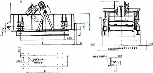 雙層ZKX型直線振動(dòng)篩(礦用振動(dòng)篩)安裝尺寸: