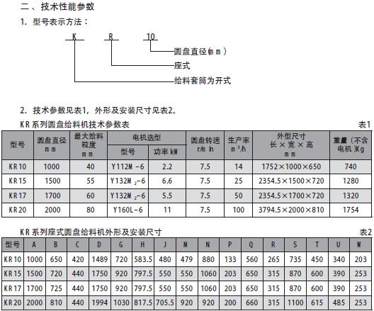 2. KR系列座式圓盤給料機(jī)正常按Y系列電動機(jī)供貨;