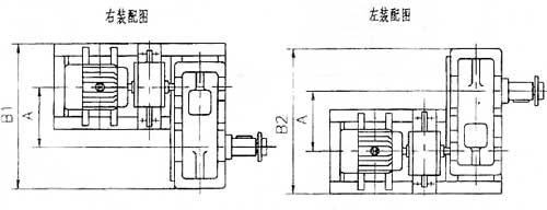 • 右裝一站在電動(dòng)機(jī)尾部向前看,減速器低速軸在電動(dòng)機(jī)的右側(cè)。