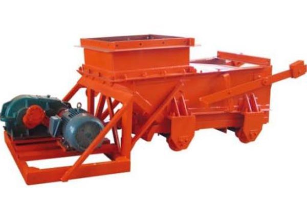 往復(fù)式給煤機由機架、底板(給煤槽)、傳動平臺、漏斗、閘門、托輥等組成。當(dāng)電機開動后經(jīng)彈性聯(lián)軸器、減速機、曲柄連桿機構(gòu)拖動傾料5°的底板在輥上作直線往復(fù)運動,煤均勻地卸到其他設(shè)備上。往復(fù)式給煤機具有生產(chǎn)能力大、體積小、重量輕、便于安裝、給料調(diào)節(jié)范圍大等優(yōu)點。往復(fù)式給煤機不但能滿足大型高產(chǎn)高校礦井系統(tǒng)的大流量輸送要求,而且大大提高了設(shè)備的工作可靠性和生產(chǎn)的安全性,擴大了生產(chǎn)能力的可調(diào)節(jié)性。